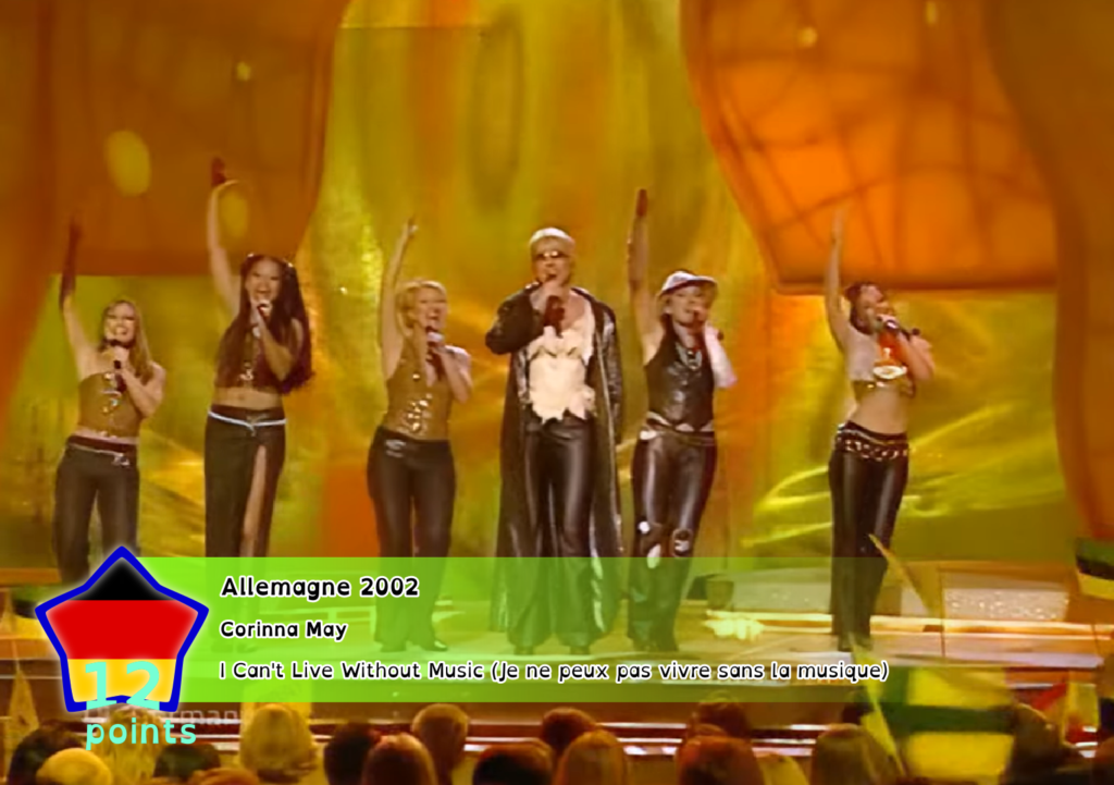 Le 22 février 2002, Corinna a participé à la finale nationale allemande pour le concours Eurovision de la chanson 2002 avec la chanson « I Can’t Live Without Music » (Je ne peux pas vivre sans la musique), écrite par Bernd Meinunger et composée par Ralph Siegel. Et cette fois-là, sa troisième tentative était la bonne, car la chanteuse a gagné la finale nationale allemande et est devenue la représentante de l’Allemagne à l’Eurovision 2002 de Tallinn. Corinna a enfin pu sentir son rêve de participer à l’Eurovision devenir réalité. Un proverbe allemand dit « Dreimal ist Bremer recht » (La troisième fois est la bonne pour les gens de Brême), l’équivalent du proverbe français « jamais deux sans trois ». Ironie du sort, Corinna est née à Brême.
