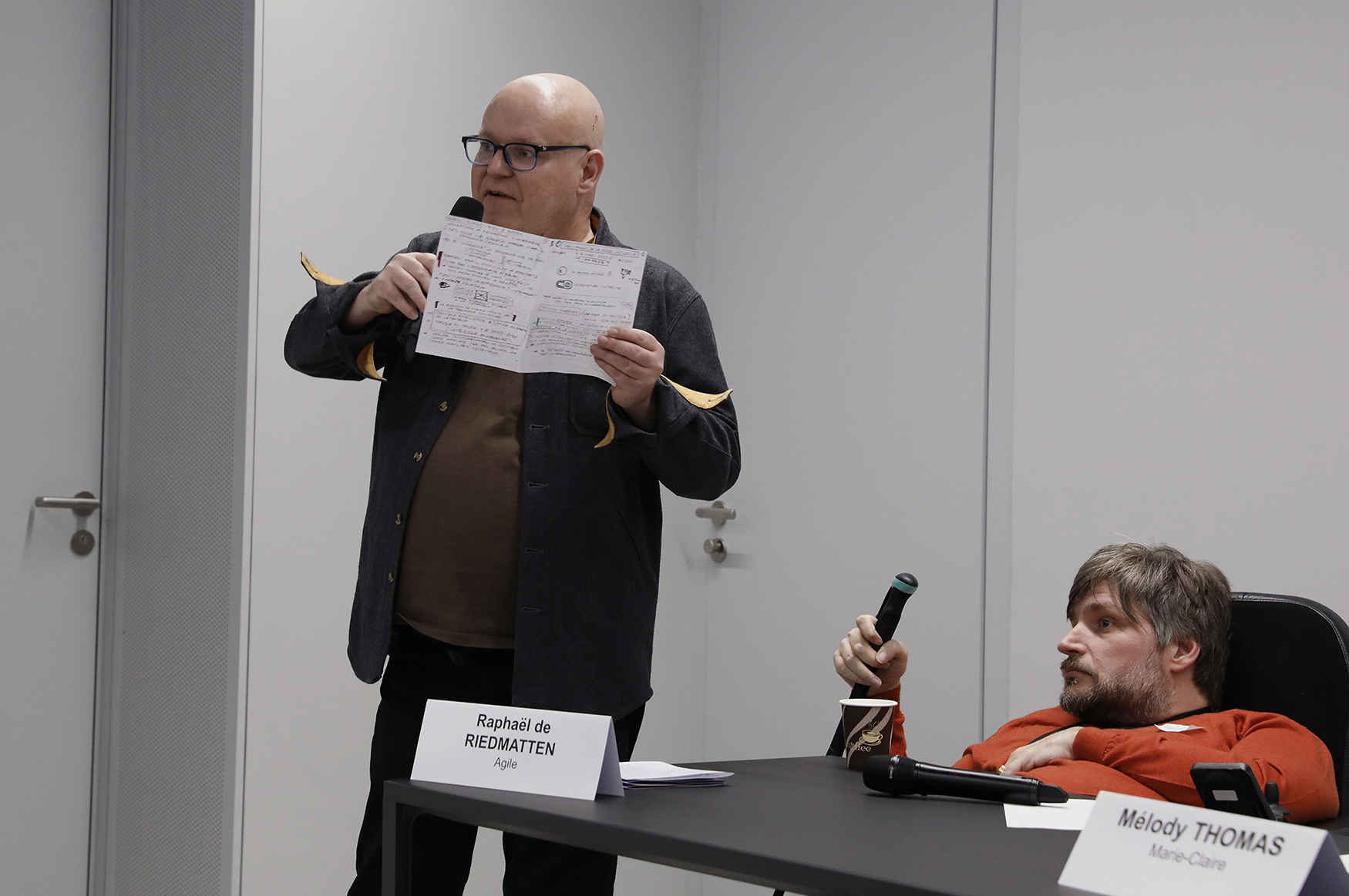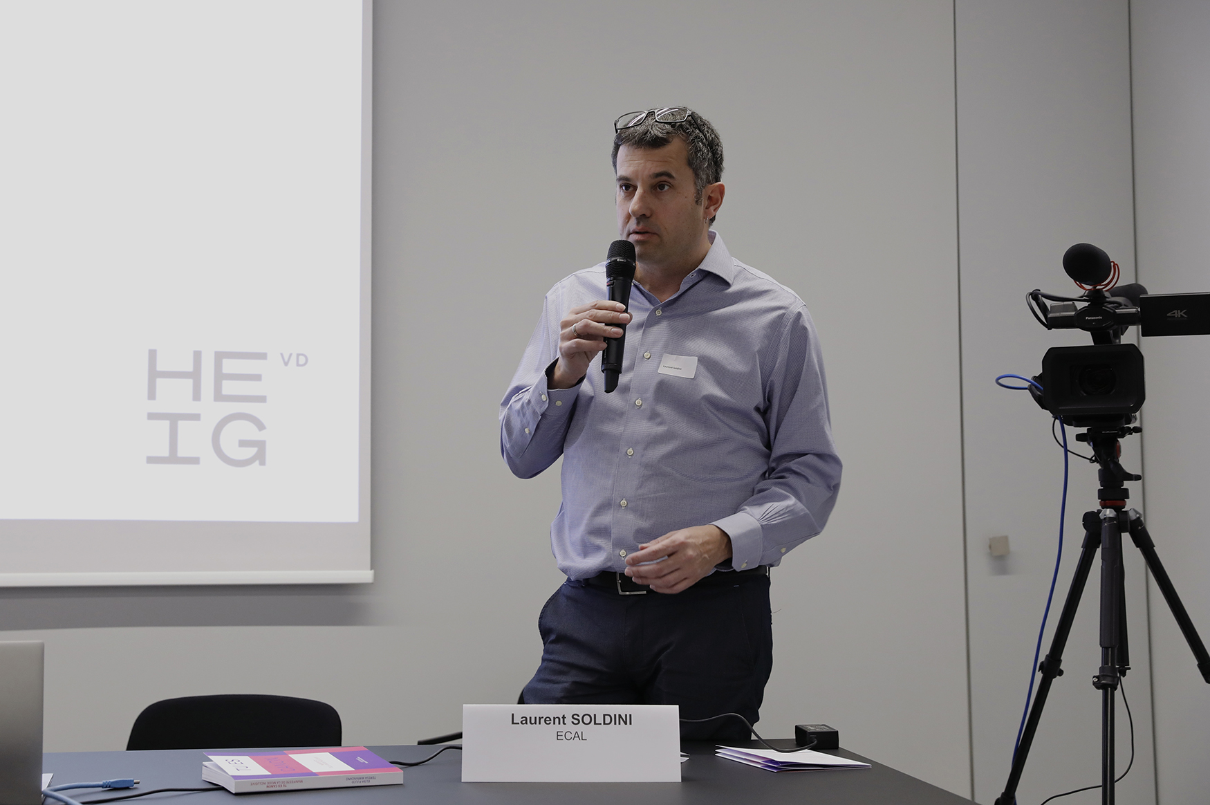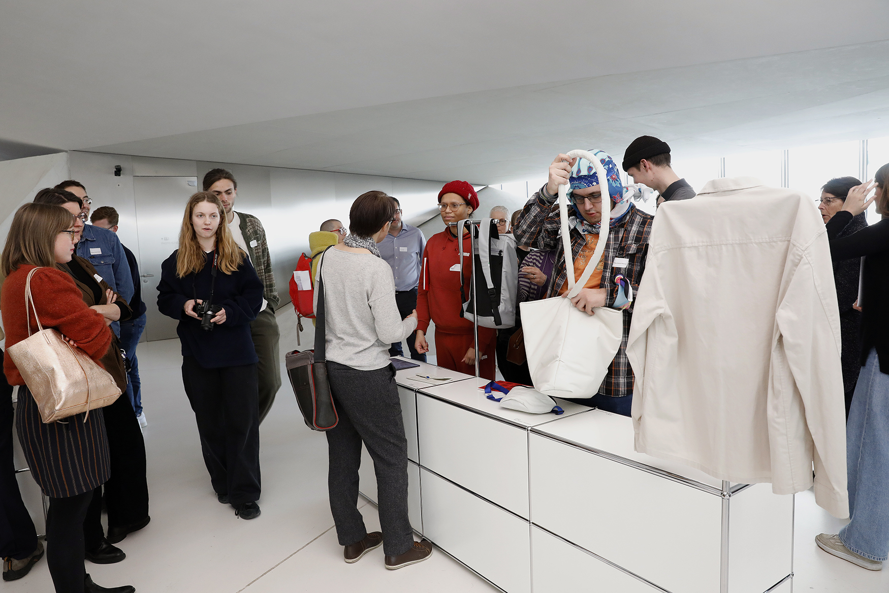 Stéphane Halmaï-Voisard, Laurent Soldini et Friederike Daumiller. Présentation des projets réalisés par les étudiant.es de l’ECAL dans le cadre de l’atelier « Inclusive Soft Goods Hardware ».