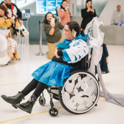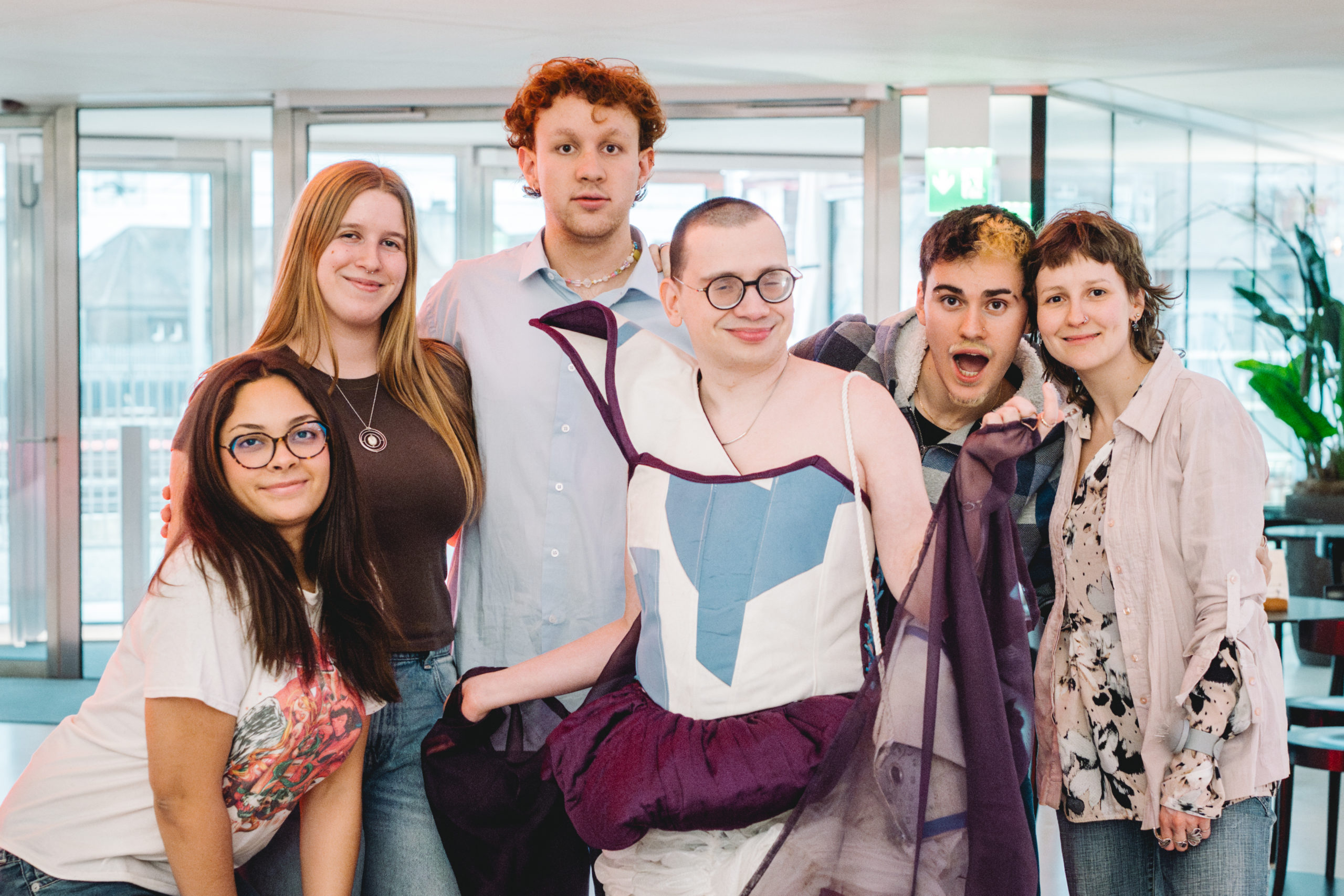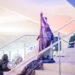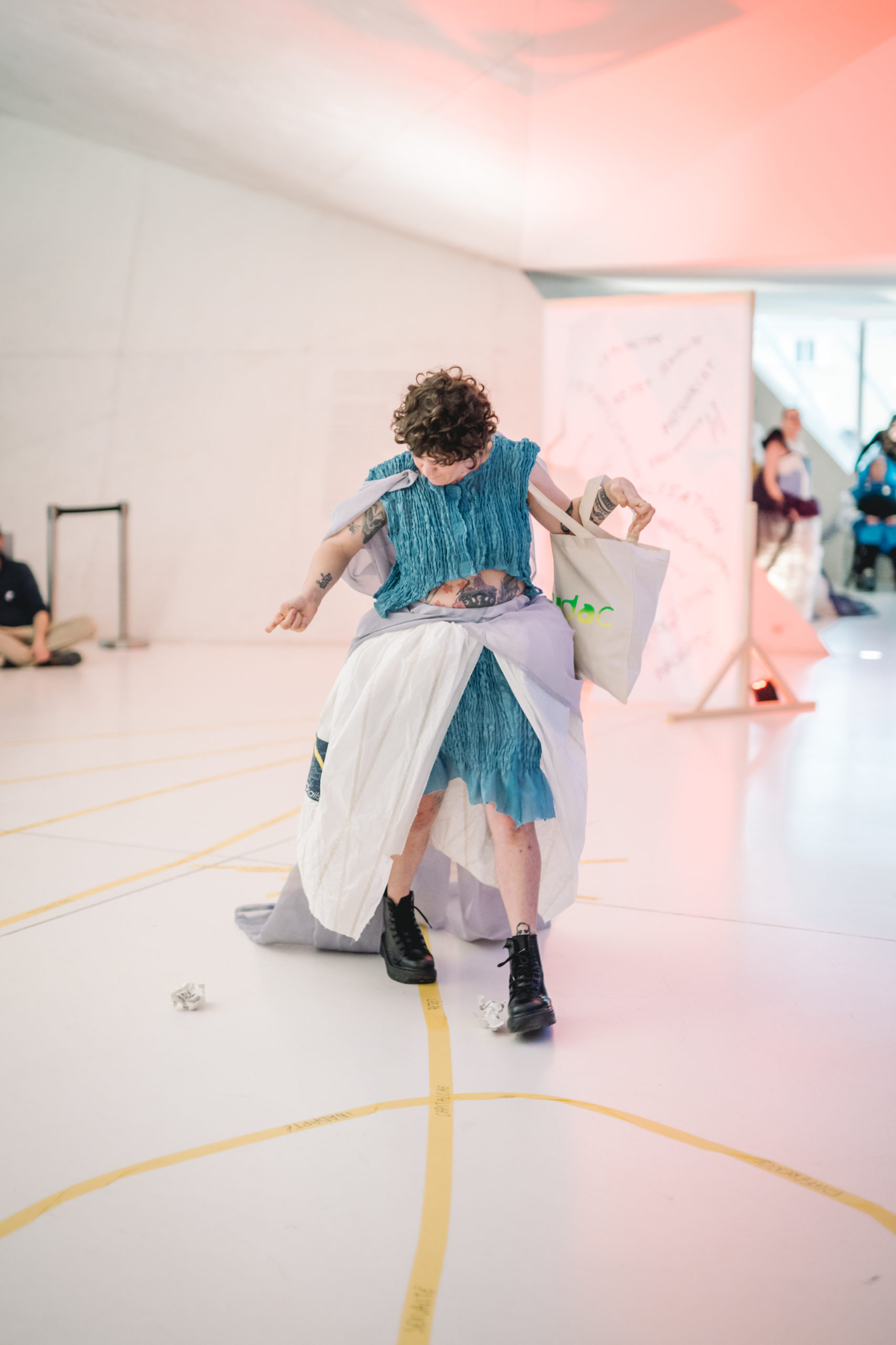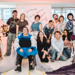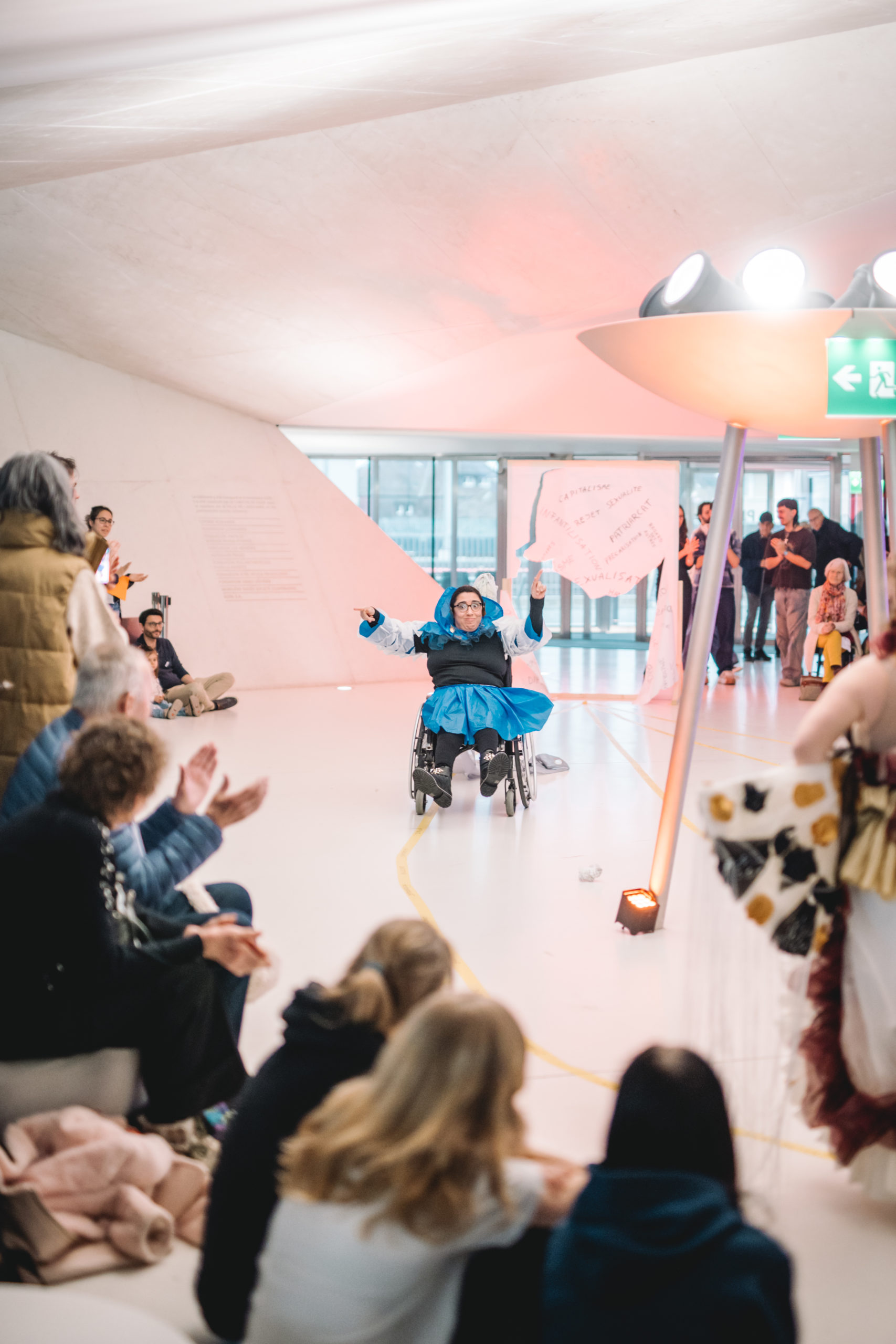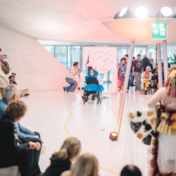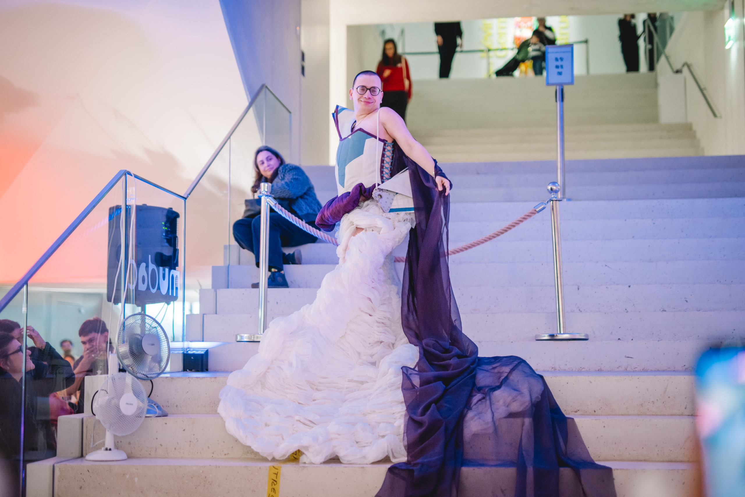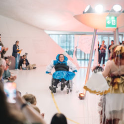 En clôture de la journée, les étudiant.e.s de la HEAD ayant participé au workshop Les Merveilleuses ont présenté avec Lucie Guiragossian les tenues réalisées sous la forme d’un défilé en musique dans le hall du musée.