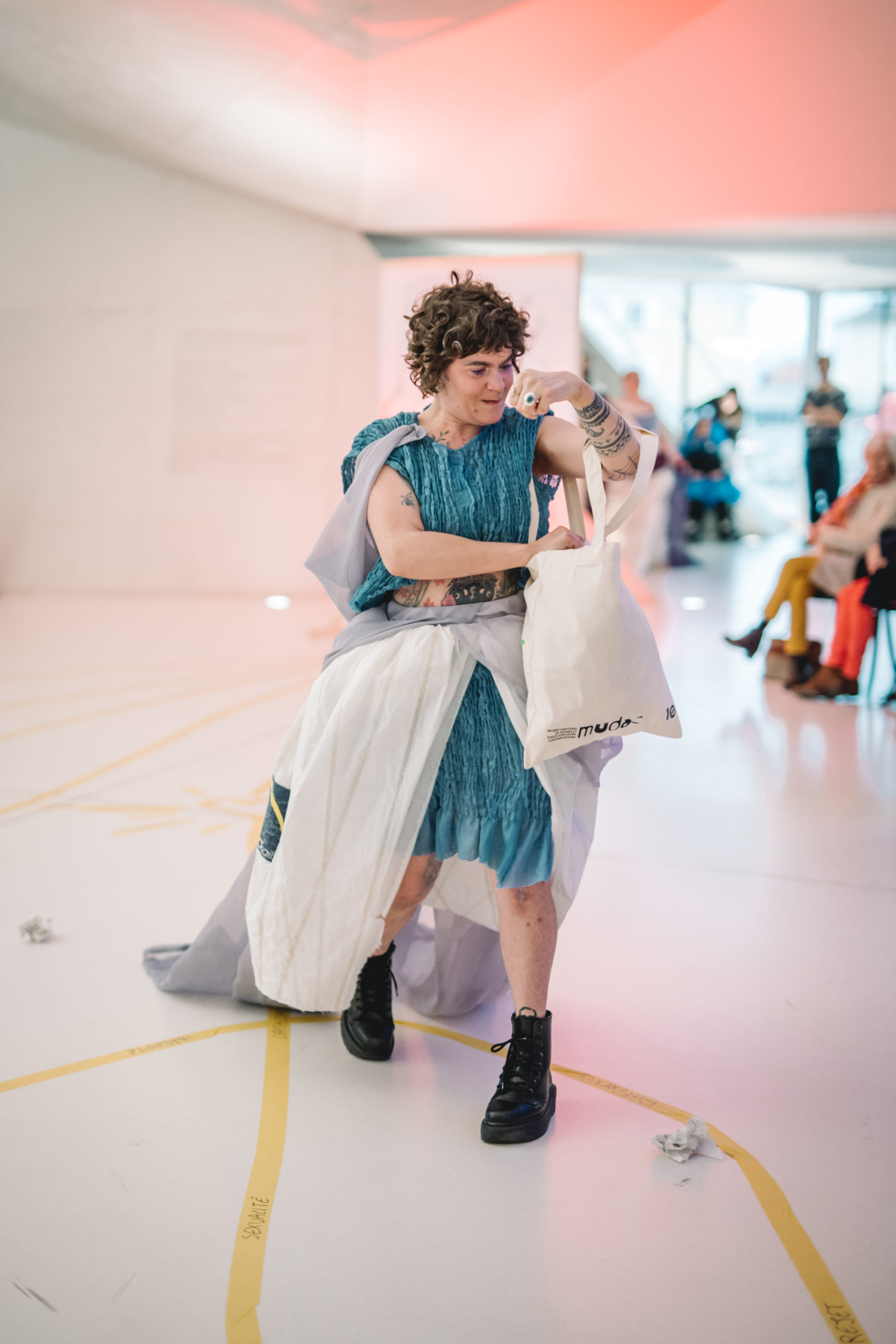 Le 28 février 2026 a eu lieu au mudac – musée cantonal de design et d’arts appliqués contemporains de Lausanne, la journée Mode et Arts textiles : entre durabilité et critique sociale, en résonance avec les expositions Les Monstrueuses. Carte blanche à Kevin Germanier (7.11.2025-22.3.2026) et Tisser son temps. Goshka Macuga x Grayson Perry x Mary Toms (7.11.2025-8.3.2026).