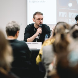L’après-midi, le journaliste Malick Reinhard a animé dans l’auditorium deux tables rondes pour approfondir les enjeux de transformation sociale que l’on peut transmettre à travers des expositions et la formation des jeunes designers.