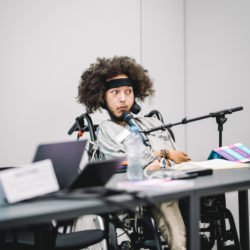 En parallèle, trois visites flash aux expositions du mudac ont été proposées par l’équipe de médiation. Anaëlle Hirschi, remplaçante de la conservatrice des collections, a présenté les acquisitions de design inclusif du mudac.